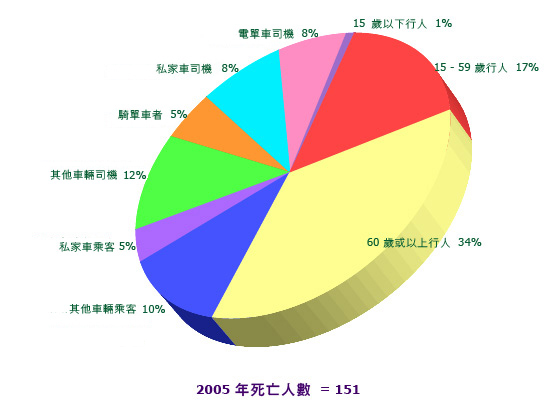 二零零四年及二零零五年按道路使用者類別劃分的道路交通意外死亡數字