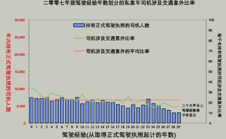 二零零七年按驾驶经验年数划分的私家车司机涉及交通意外比率