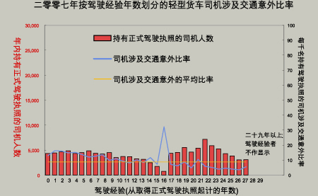 二零零七年按驾驶经验年数划分的轻型货车司机涉及交通意外比率