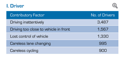 Top 5 contributory factors in traffic accidents 2011 |