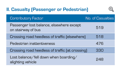 | The Council’s programmes and direction are determined based on close scrutiny of traffic accident and causation factors. Traffic accident statistics and trends are carefully analysed to develop and implement measures to mitigate and prevent traffic accidents. | |